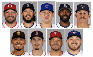 De Izq. A Der. José Treviño, Andrés Muñoz, Javier Assad, Randy Arozarena, Joey Ortiz, Jeremiah Estrada. Jarren Duran, Taijuan Walker y Alejandro Kirk.